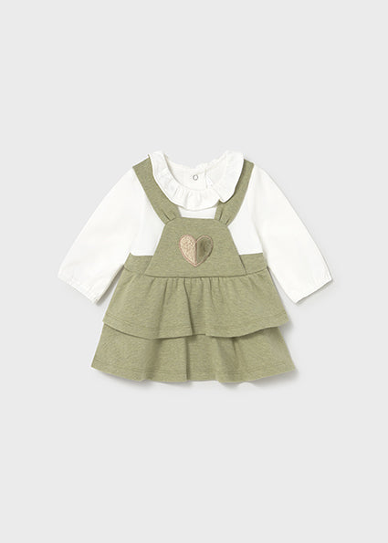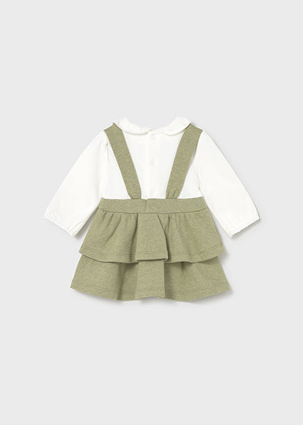 Design con effetto salopette e gonna integrata, per un look raffinato e originale.