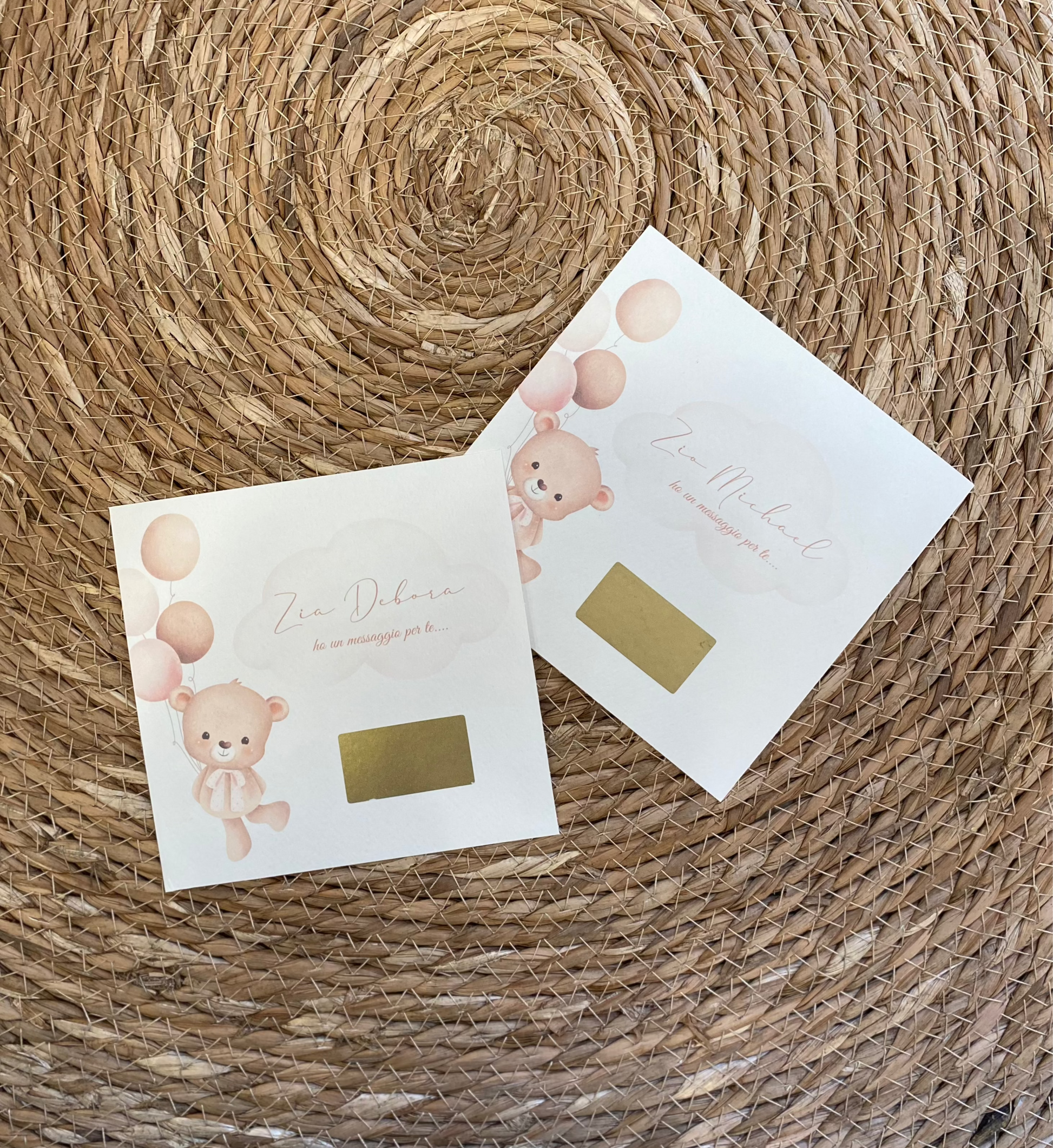 Sorprendi i futuri padrini con questo esclusivo Gratta e Vinci per battesimo! Un modo originale e memorabile per fare la tua importante richiesta. Sotto la patina dorata si nasconde un messaggio speciale ("vuoi essere il mio Padrino/Madrina?"), che li inviterà a diventare madrina e padrino del tuo bambino. Un ricordo che custodiranno per sempre, trasformando un semplice "sì" in un momento indimenticabile!